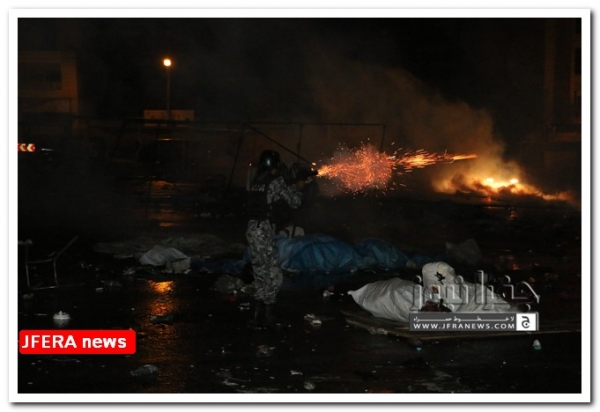 وحاول التجار ثني رجال الأمن وكوادر الأمانة عن هدم خيمهم وإزالة البسطات المتبقية مرددين "..الموت ولا المذلة" ، وأطلقت قوات الدرك الغاز المسيل للدموع بكثافة في قلب السوق لتفريقهم، بعد أن اعتقلت العشرات.