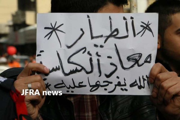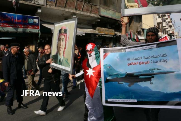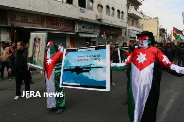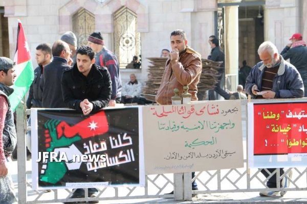 نظم تجمـــــع شبـــاب الـــــولاء والانتمــــاء للوطــــن وقائــــد الوطـــن وقفة تضامنية للنسر الاردني معاذ الكساسبة والجيش العربي حيث قام بتوزيع بيان صادر عن التجمع وجاء فيه :