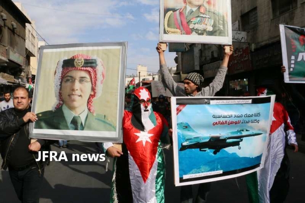 تحية إجلالاً وإكباراً لك يا معاذ أيها البطل المغوار ولكل نشامى القوات المسلحة الأردنية الذين كانوا دوماً حاضرين ويدهم على الزناد مستعدين لكل طارئ ولكل خطر. فقد عشقوا تراب هذا الوطن وأصبحوا جزءاً منه إنهم نشامى أبو الحسين رعاهم الله وسدد خطاهم.. حماكم الله يا أسود الوطن . كلنا معكم قلباً وقالباً وخلف قيادتنا الهاشمية وسنكون العين التي لا تنام لحماية ثرى هذا الوطن الغالي. وبإذن الله سترجع يا معاذ لوطنك ولأهلك ولعشيرتك سالماً معافى وستبقى الراية عالية خفاقة في سماء الوطن- هاشمية القيادة أردنية الولاء عربية الانتماء، والأردن سيبقى آمن مستقر وواحة عيش كريم وسيظل عصياً على كل متآمر ومأجور.