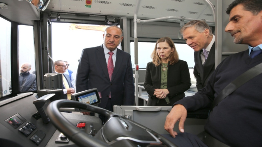 الشواربة يتفقد التشغيل التجريبي للحافلات الكهربائية