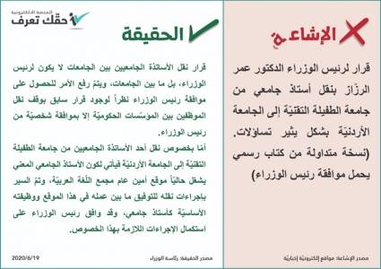 الحكومة توضح حول نقل الرزاز لدكتور من الطفيلة للاردنية