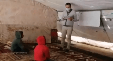 المعلم البدور يجوب خيم عفرا والبربيطة بالطفيلة لتعليم الطلبة