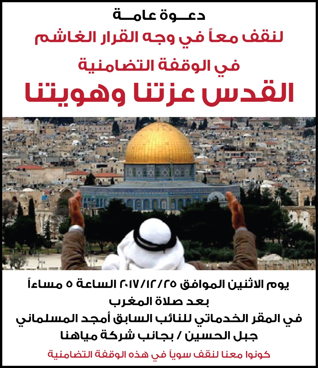 المسلماني يدعو المواطنين لوقفة تضامنية ضد القرار الامريكي