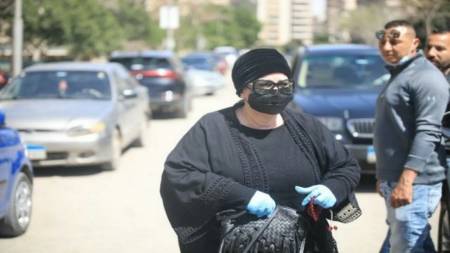 دلال عبدالعزيز بالكمامة السوداء والجوانتي في جنازة جورج سيدهم
