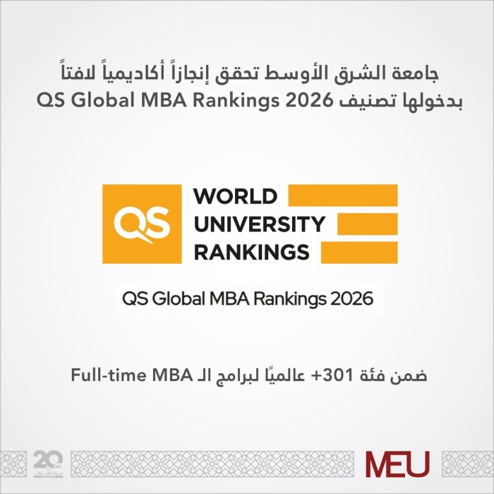 جامعة الشرق الأوسط تحقّق إنجازًا عالميًا بدخولها تصنيف QS Global MBA Rankings لعام 2026