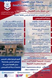فتح باب القبول والتسجيل في جامعة عمان الأهلية على الفصل الدراسي الصيفي من العام الجامعي (2019-2020)