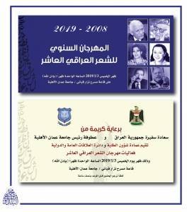 المهرجان السنوي العاشر للشعر العراقي في "عمان الاهلية " غدا الخميس