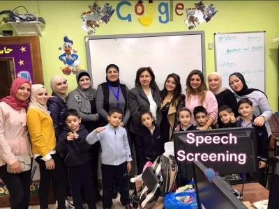 طلبة قسم النطق واللغة بجامعة عمان الاهلية يجرون فحوصات عملية لتلاميذ من مدارس الجامعة الاولى