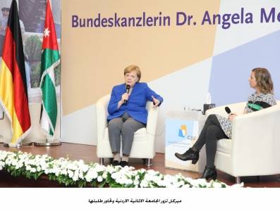 ميركل تزور الجامعة الالمانية الاردنية وتحاور طلبتها