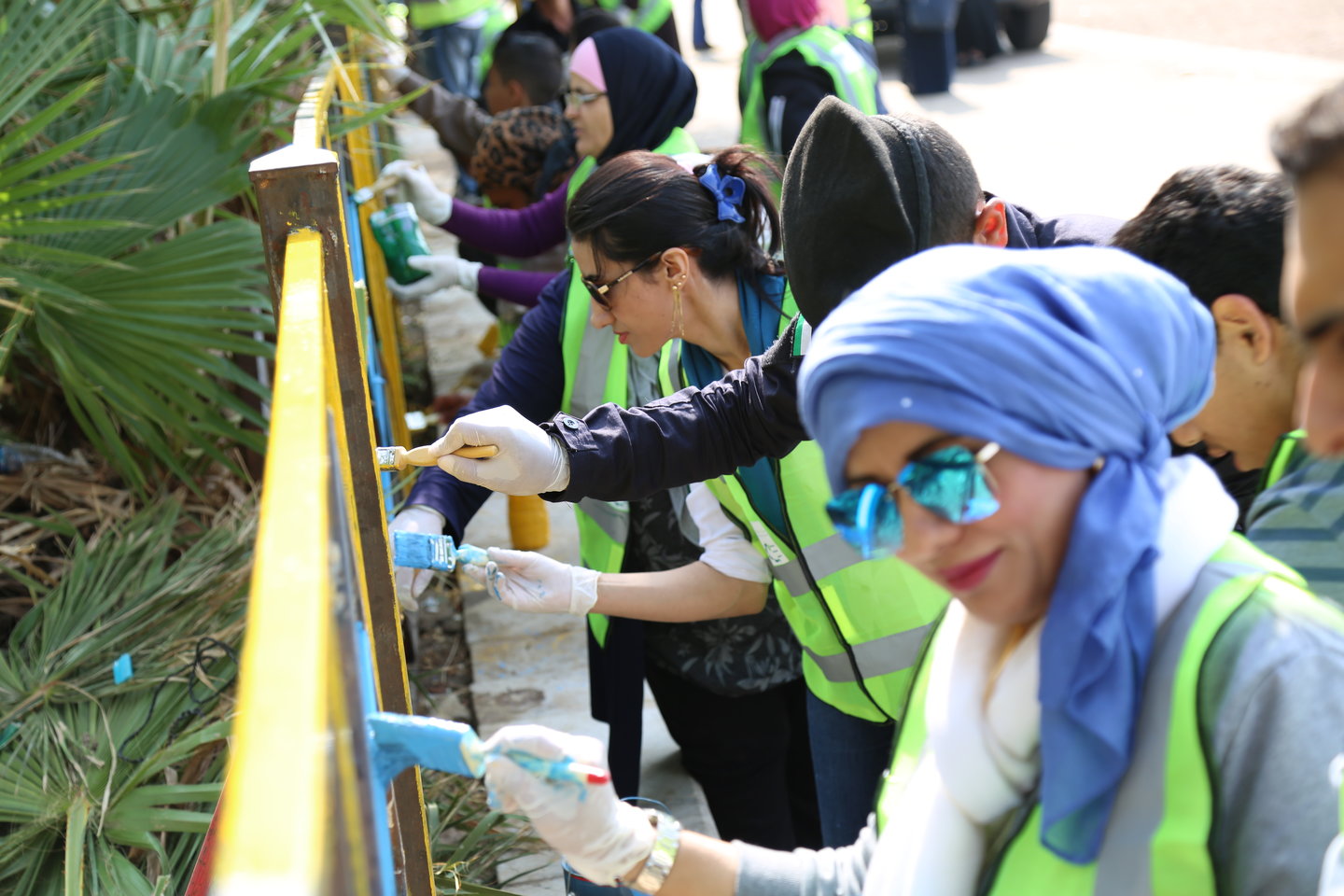 مشاركات من "مواطنة فاعلة" يشاركن في طلاء مدخل "الغندور "