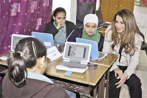 الملكة رانيا تزور مدرسة الأميرة رحمة للبنات وتطلع على تطبيقات لبرامج مبادرة التعليم