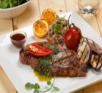 شرائح اللحم مع صوص الأعشاب والخضراوات