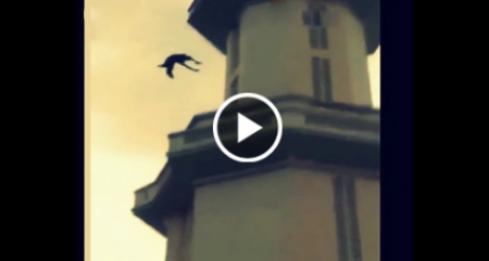 بالفيديو.. لحظة سقوط رجل من أعلى مأذنة شاهقة الارتفاع