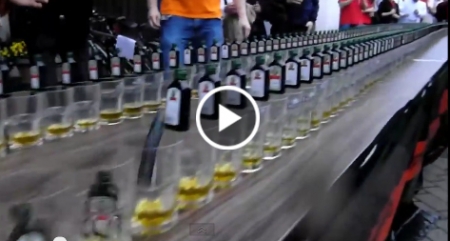 بالفيديو.. شاب يسقط عددا كبيرا من الزجاجات بضربة واحدة