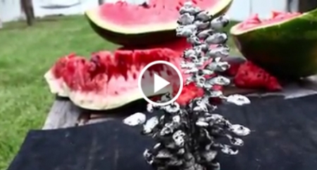 بالفيديو.. شاهد ماذا يحدث عند وضع الألومنيوم المنصهر في البطيخ