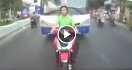 بالفيديو.. سائق حافلة يلقن قائد دراجة نارية درسًا قاسيا