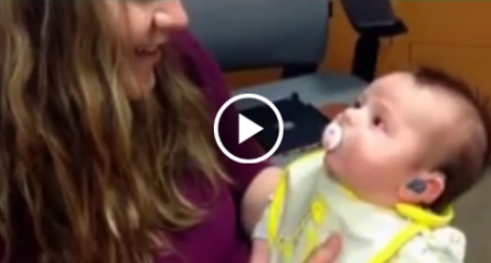 بالفيديو .. رضيع يسمع صوت أمه لأول مرة