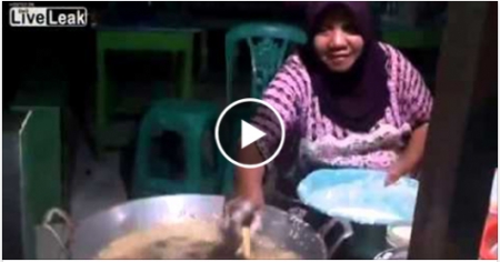 امرأة تضع يدها في الزيت المغلي ولا تتأثر