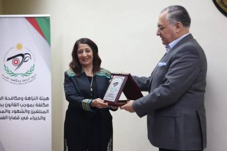 رئيس "النزاهة ومكافحة الفساد" يكرم المستشارة ميسون الخطيب