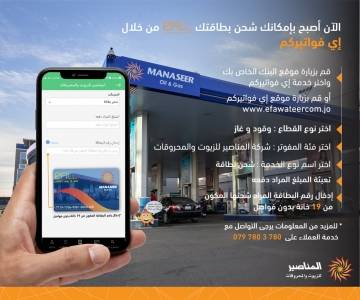 المناصير للزيوت والمحروقات و ’إي فواتيركم‘ تفعل المرحلة الثالثة لخدماتها لتشمل شحن حسابات وبطاقات eFill