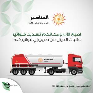 المناصير للزيوت والمحروقات تطلق خدمة الدفع الإلكتروني لطلبات العملاء من مادة الديزل من خلال خدمة الدفع "إي فواتيركم"