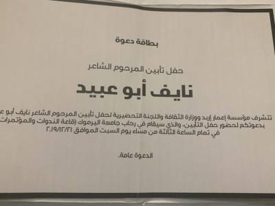 دعوة لحضور حفل تابين المرحوم الشاعر نايف ابو عبيد