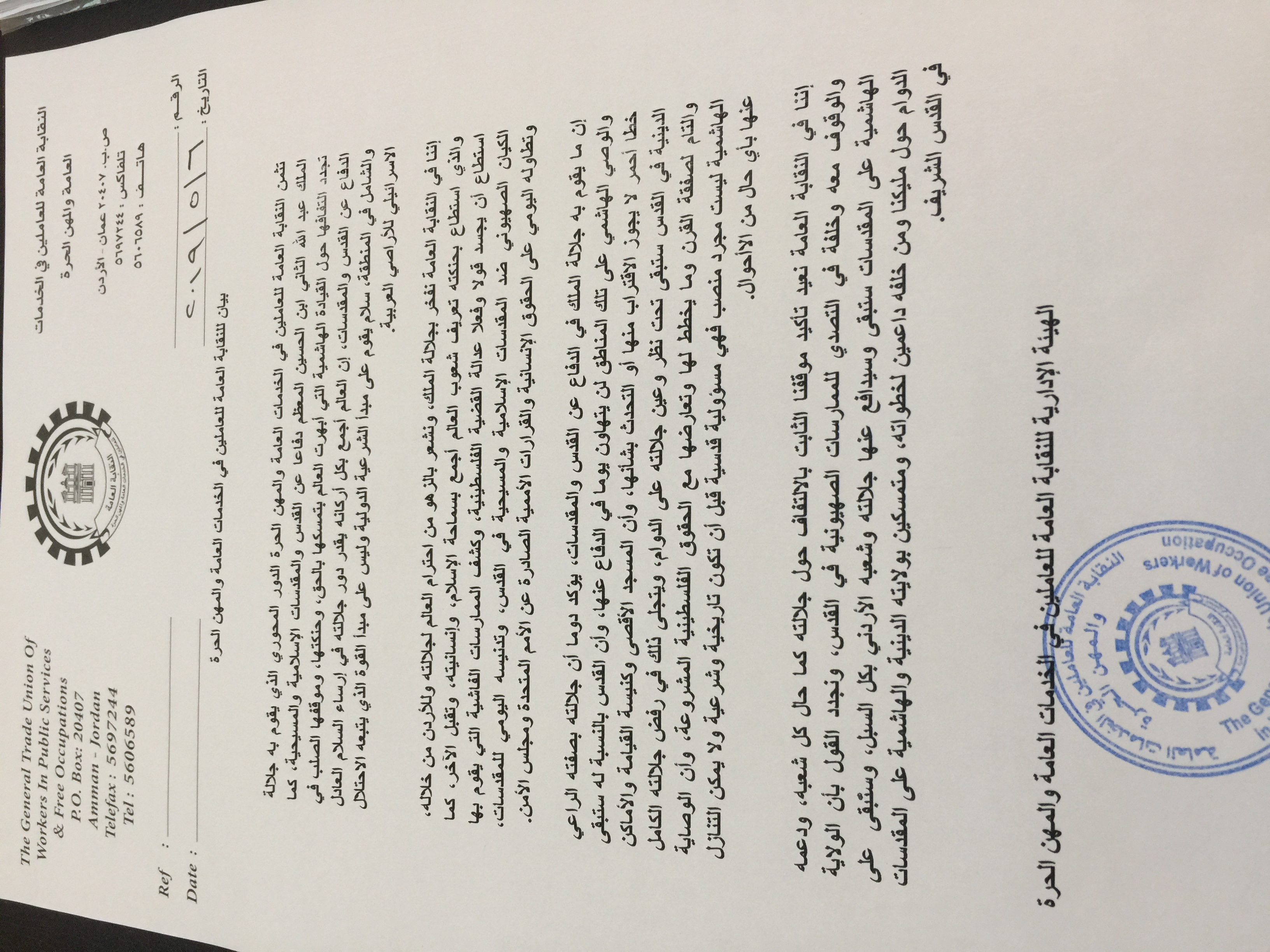 نقابة العاملين بالخدمات العامة والمهن الحرة تثمن مواقف الملك بالدفاع عن المقدسات