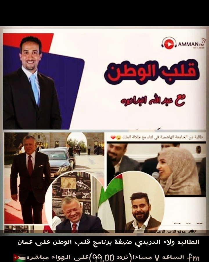 الطالبه ولاء الدريدي ضيفة "قلب الوطن" عبر عمان fm في الـ ٧ مساءا