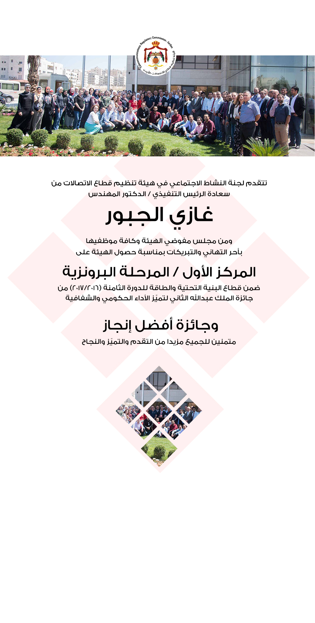 تهنئة بجوائز التميز لهيئة تنظيم الاتصالات