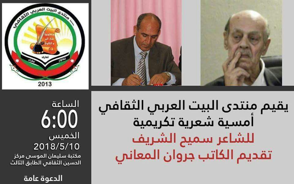 منتدى البيت العربي الثقافي يكرم الشاعر سميح الشريف