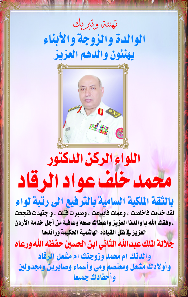 تهنئه وتبريك لـ محمد الرقاد بمناسبة الترفيع لرتبه لواء