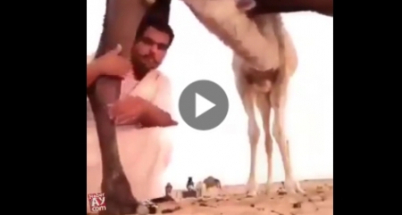 بالفيديو.. شاب خليجي جلس لالتقاط صورة أسفل جمل فحدث ما لا يتوقع