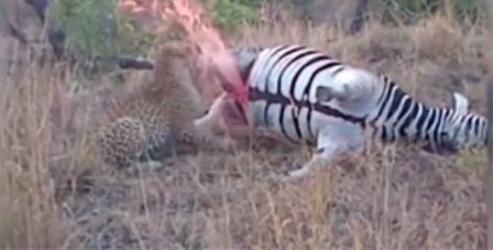 بالفيديو..لحظة انفجار حمار وحشي في وجه فهد يلتهمه