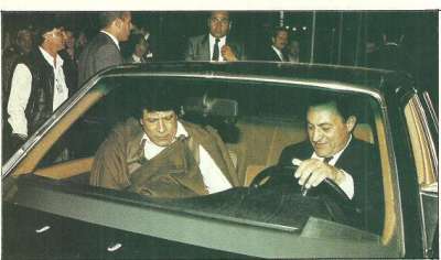 في صورة نادرة حسني مبارك يعلم معمر القذافي كيفية قيادة السيارة