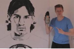 بالفيديو.. شاب يرسم صورة ميسي بحذاء رياضي !