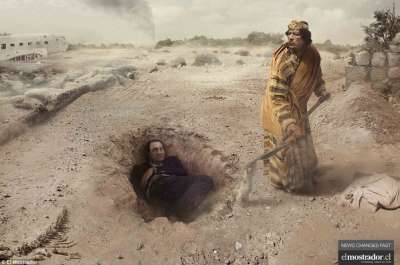 صحيفة تشيلية تنشر صورة القذافي وهو يدفن مبارك
