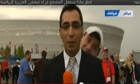 شاهدوا بالفيديو ماذا يفعل المشجع الروسي وراء صحفي الجزيرة الرياضية