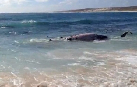 بالفيديو والصور.. 100 سمكة قرش تلتهم حوتاً على شاطئ المحيط الهندى
