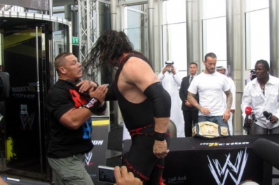 شاهد بالصور : هجوم كاين على سينا في مؤتمر WWE بدبي