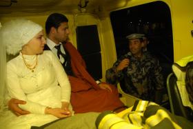 الدفاع المدني يزف عروسين علقا بالثلوج بالآليات المجنزرة .. صور