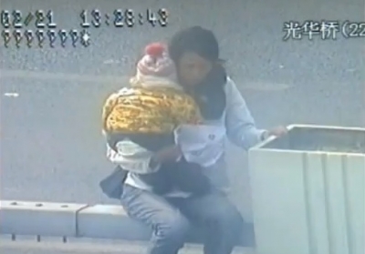سيدة تحاول الانتحار وتحمل طفلها والكاميرا تلتقطها ..فيديو