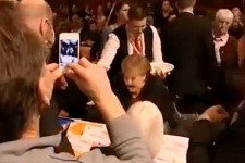في فيدو محرح دش بيرة تسقط على راس المستشارة أنجيلا ميركل