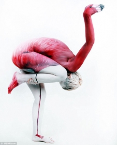 شاهدو الصورة المذهلة جسد عارضة منظر لجسد طائر الفلامنجو!!