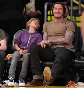 ديفيد بيكهام وابنه يحدقان بمشجعات فريق الليكرز صور