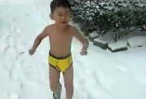 شاهدوا بالفيديو..اجبار طفل على المشي عاريا فوق الثلج!!