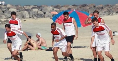 فتيات في البكيني يشتتن انتباه لاعبي " آي.سي.ميلان" على شواطئ دبي