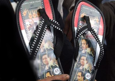 بالصور..شباشب صينية عليها صور مبارك والعادلي تباع امام اكاديمية الشرطة