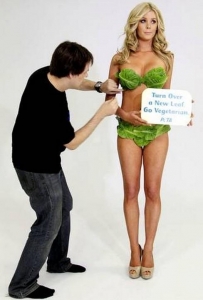 عارضة بلاي تغطي اجزاءها الحساسة بالخس وتدعو الجمهور للطعام النباتي.