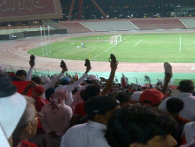 مشجعو البحرين رفعوا الأحذية فور سماع النشيد الوطني الايراني في مباراة كرة القدم بين الفريقين