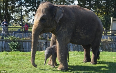 بالصور والفيديو..فيل أنثى تضع صغيرها بعد حمل استمر سنتين